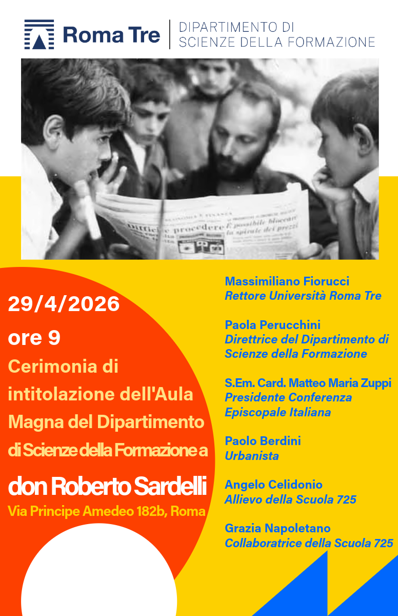 Mercoledì 29 aprile 2026, alle ore 9:00, presso il Dipartimento di Scienze della Formazione (via Principe Amedeo 182b), si terrà la cerimonia di intitolazione dell’Aula Magna a don Roberto Sardelli.