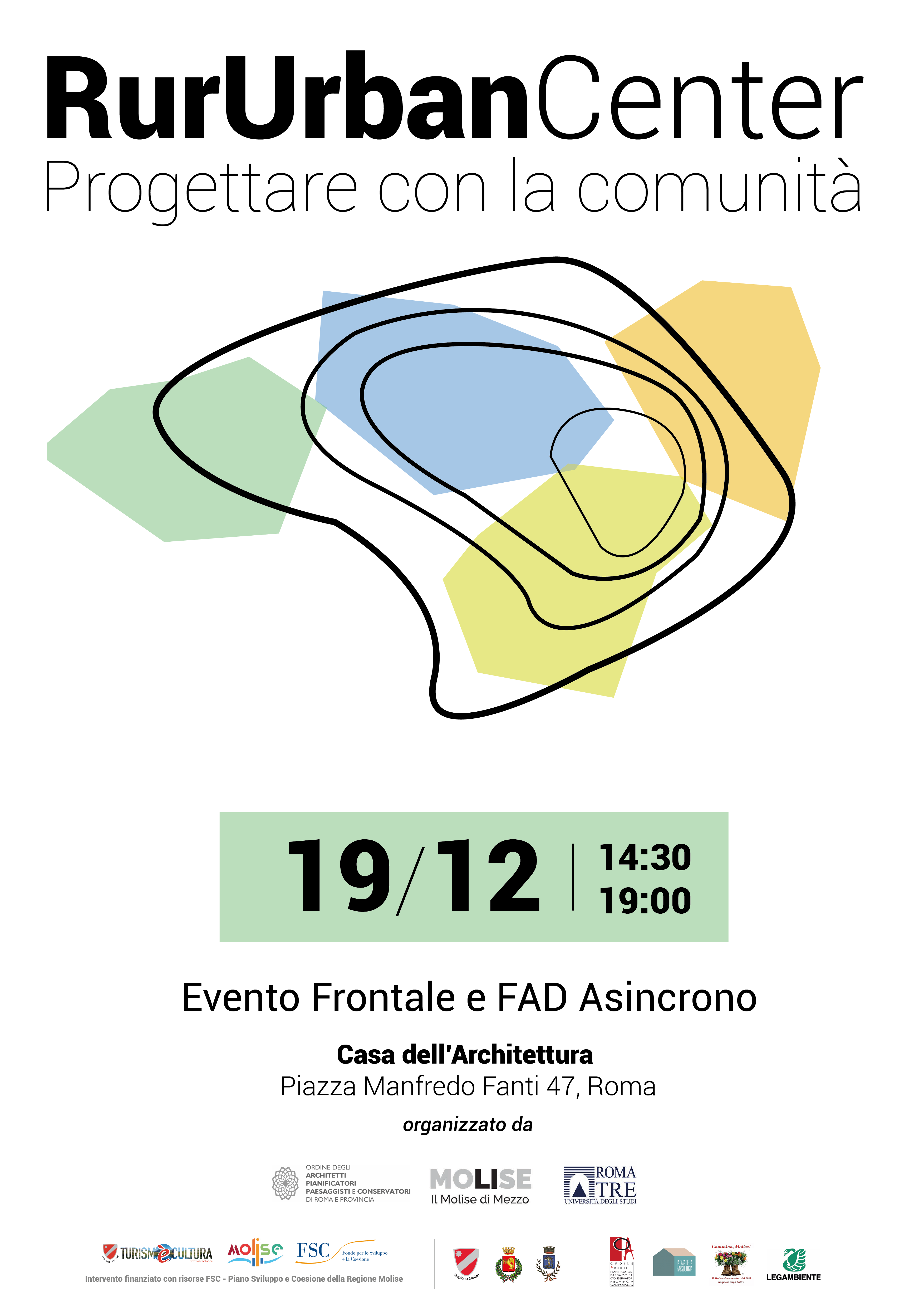Dipartimento di Scienze della Formazione Università di Roma Tre in collaborazione con la Manifestazione culturale “Il Molise di Mezzo tra Arti e Cultura 2022 VI edizione” e con l’Ordine degli Architetti di Roma e Provincia propone una giornata di dibattito intorno alla cultura del progetto “Urban Center Diffusi”, laboratorio Molise, per il giorno 19 dicembre 2022, dalle ore 14:30 alle ore 19:00.