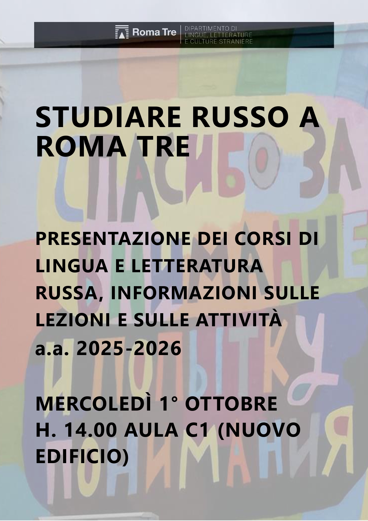 PRESENTAZIONE DEI CORSI DI LINGUA E LETTERATURA RUSSA Link identifier #identifier__176827-1LocandinaLink identifier #identifier__58488-1Link identifier #identifier__112690-2Link identifier #identifier__21414-3Link identifier #identifier__2419-4 Skip back to navigation
